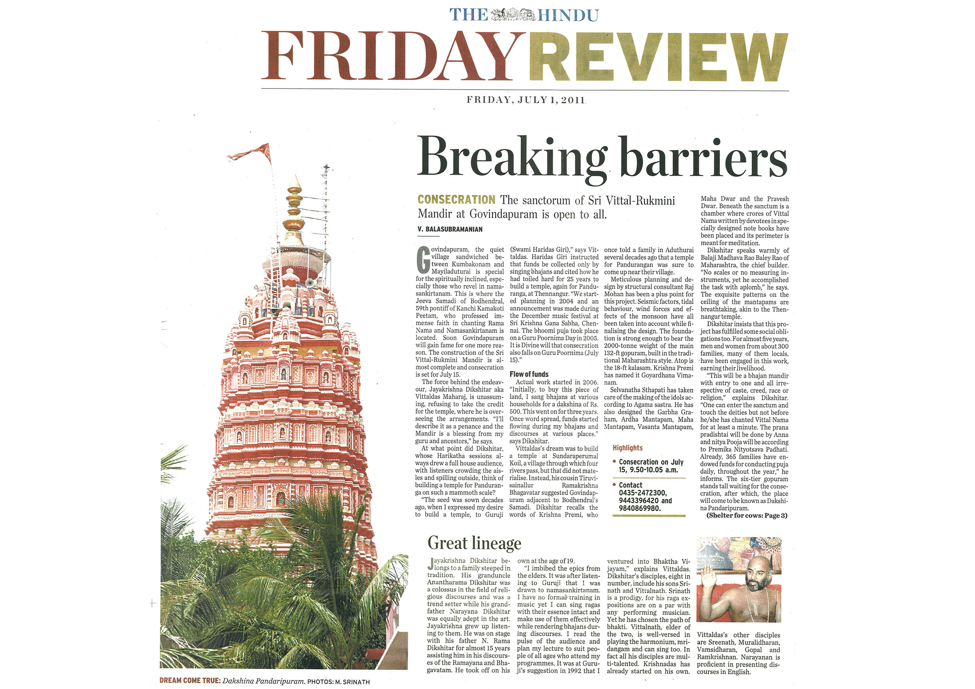 The temple, on Coimbatore-Tiruchi highway, has been constructed in a record time of 120 days. One hundred and twelve sculptors under the guidance and supervision of sculptor R.Selvanathan, a descendant of Kunjaramalla Raja Raja Perunthachchan, who built the Big Temple of Thanjavur, worked to make this a fait accompli.